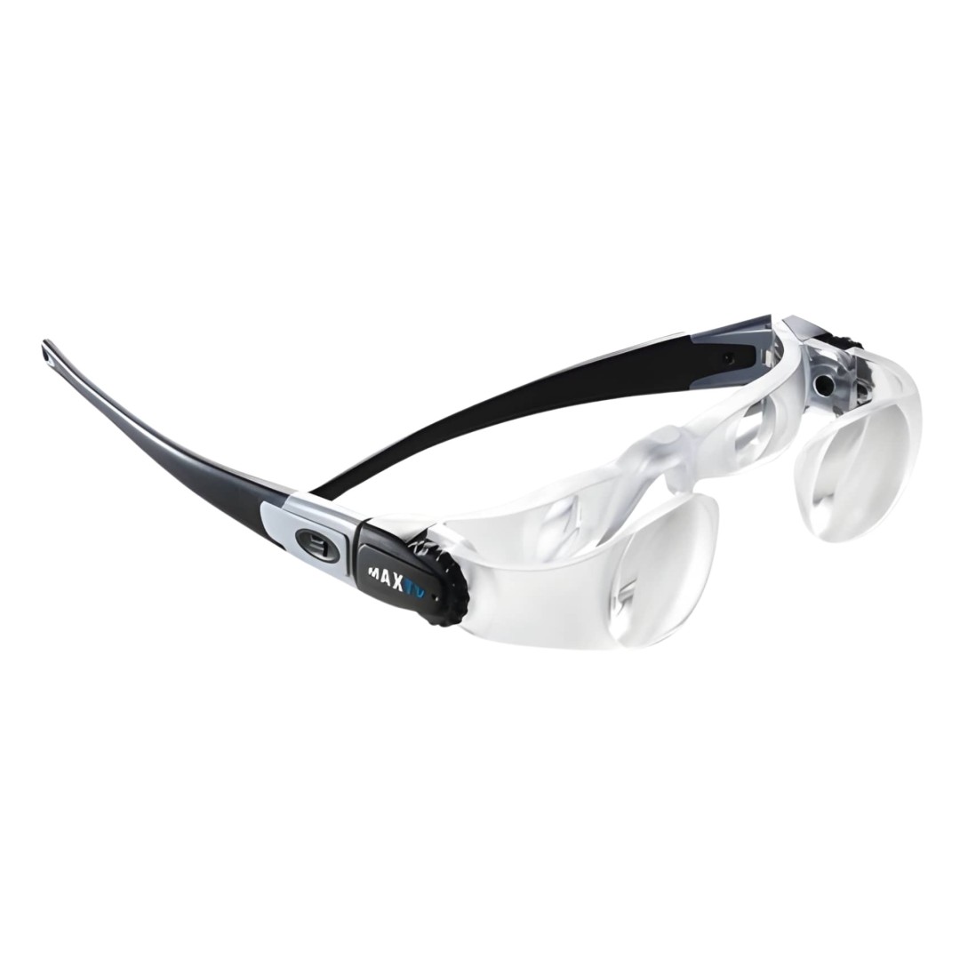 Gli occhiali MaxTV sono dispositivi ottici progettati per persone ipovedenti che desiderano migliorare la visione della televisione. Grazie al sistema di ingrandimento integrato, consentono di percepire l’immagine sullo schermo in modo più ampio e definito, migliorando il comfort visivo durante la visione.