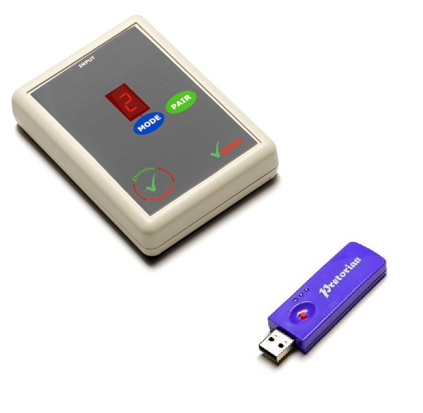 Questa interfaccia senza fili per sensori permette di utilizzare sensori standard wired e di trasformare il segnale del sensore in un comando su PC.